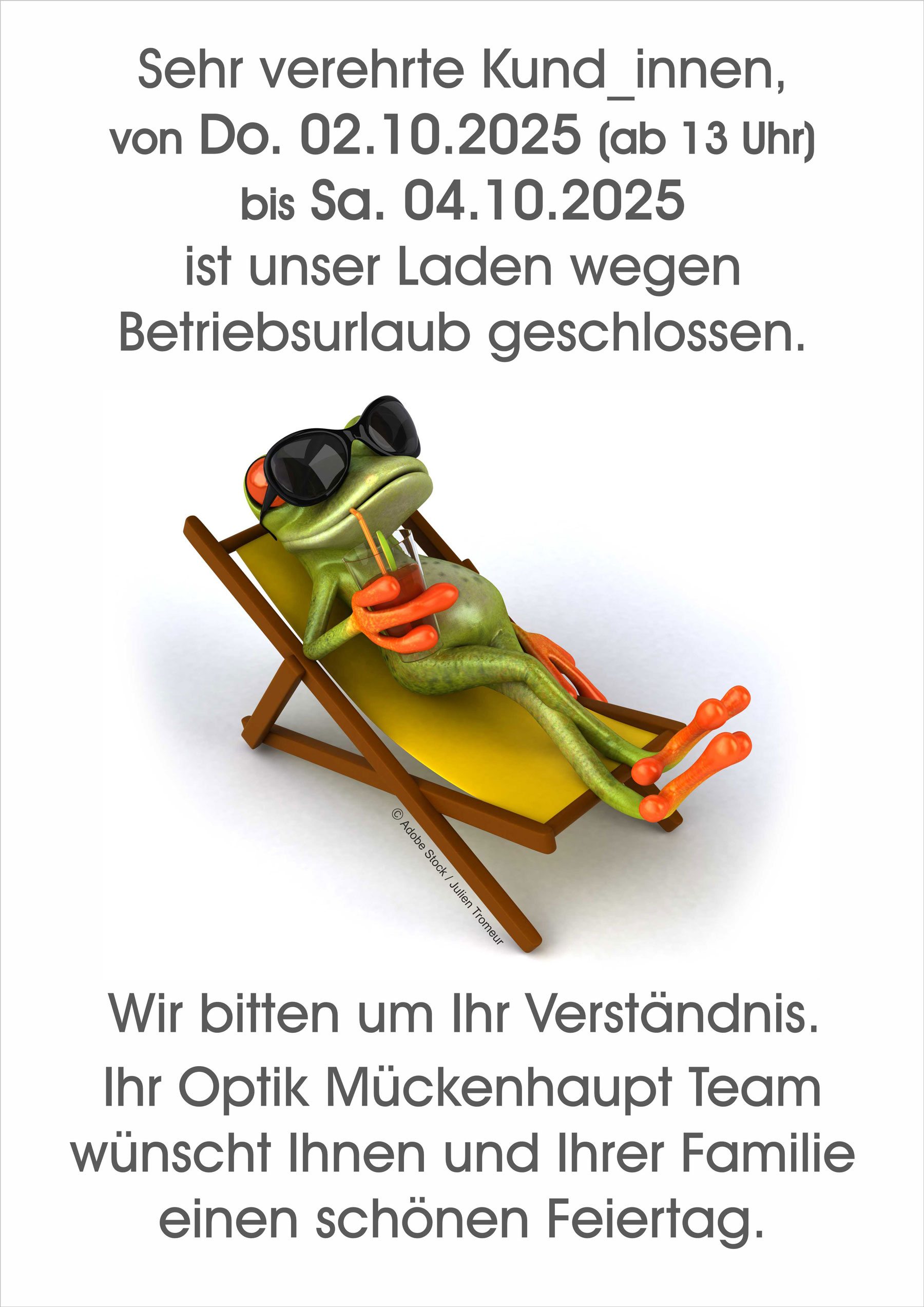 Ihr Optik Mückenhaupt Team wünscht Ihnen und Ihrer Familie schöne Ferien.